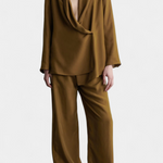 A style that combines power and elegance with polished lines. The Sue set features a structured blazer with shawl lapels, button closure, and adjustable belt, accompanied by matching trousers for a flawless silhouette. Crafted from fluid viscose, this look conveys confidence and sophistication effortlessly.