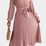 Theresa High Neck Dress with Pleated Belt