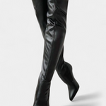 Bold, elegant, and undeniably striking, the Fianna Boots are designed to turn heads. With their thigh-high elastic fit, daring metallic stiletto heel, and refined zip detail at the back, they bring high-impact glamour to any evening look.