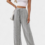 Comfortable, breathable, and with a relaxed touch, the Sabrina trousers are your ideal choice for stylish, laid-back days. Their straight cut and drawstring waist ensure freedom of movement and a perfect fit, while the striped design adds a fresh and timeless vibe.