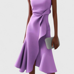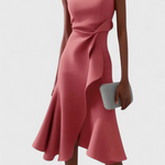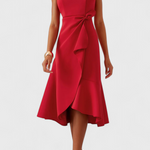 Modern sophistication with a silhouette that dazzles gracefully. The Claudia dress combines a midi cut with asymmetrical draping and clean lines that effortlessly enhance the figure. Designed to turn heads at weddings, special dinners, or any event where you want to stand out with refined style.
