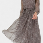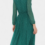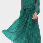 A cheerful design with retro nods that never go out of fashion. Cymene stands out with a classic polka dot print that adds dynamism and charm, while its puff sleeves provide volume and a romantic touch. The round neckline and midi cut balance sobriety and versatility, creating a piece that easily transitions from casual to elegant.