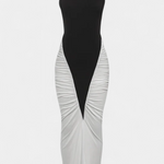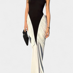 A modern silhouette that combines contrast and sophistication. The Ariana dress stands out with a black and white design that offers visual impact, while the pleats add texture and elegant movement. This dress is designed for those seeking a distinctive and memorable style.