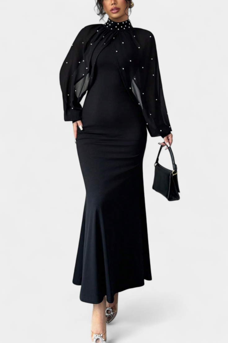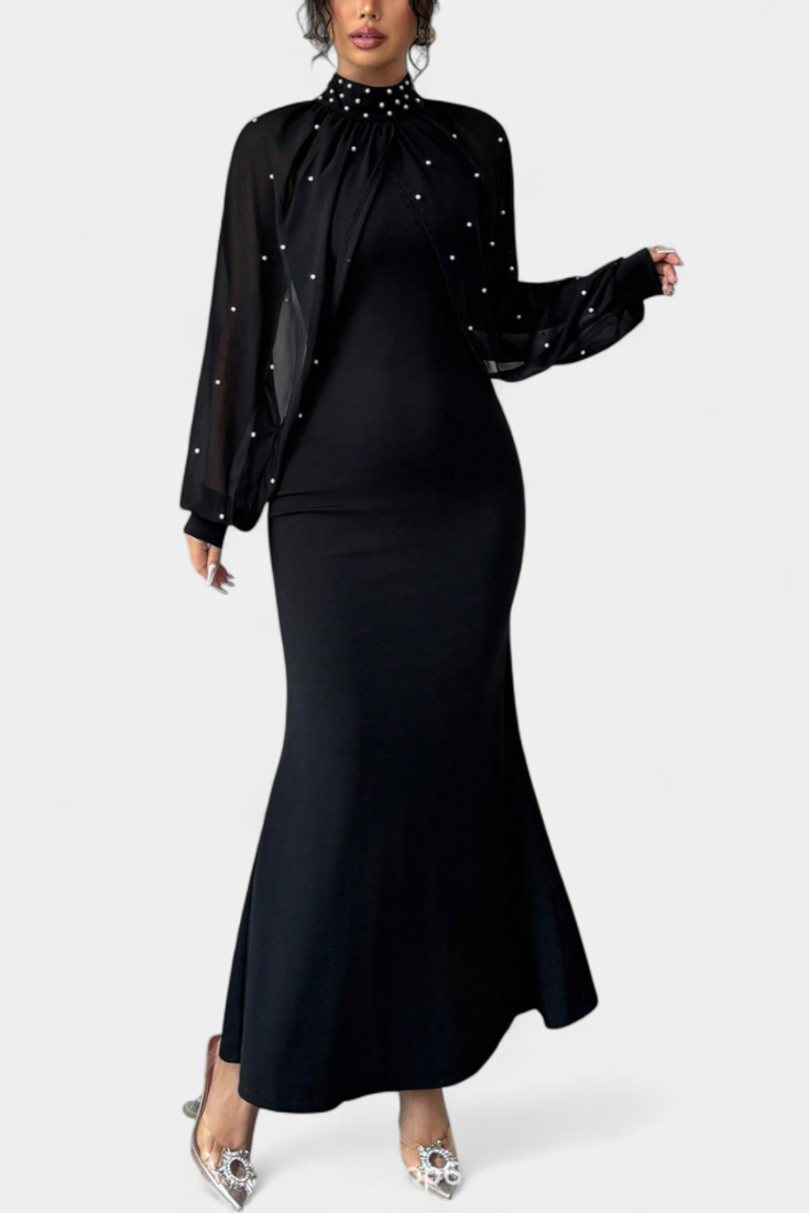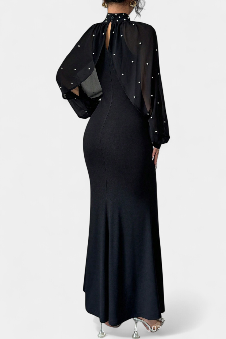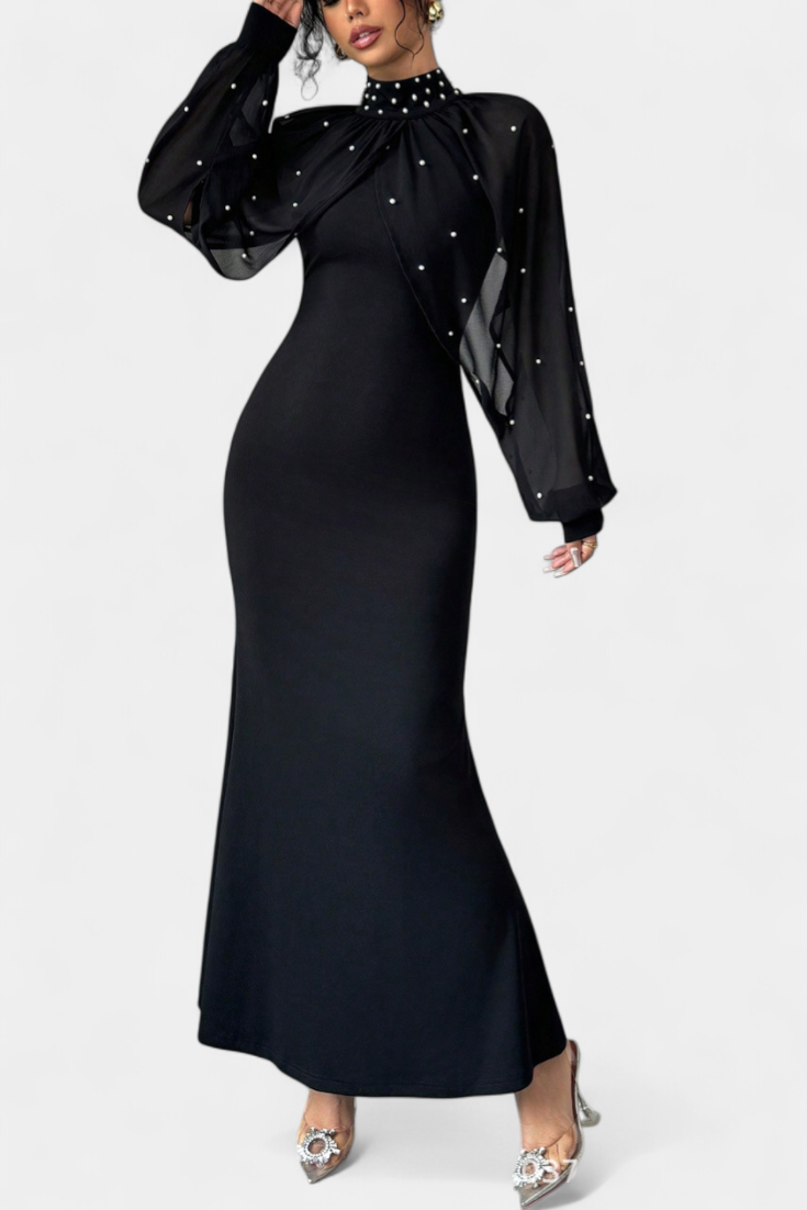 - Delicate mesh with bead embroidery for a luminous finish