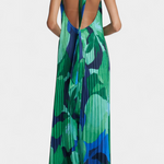 Giselle Long Pleated Dress with Halter Neck and Elegant Movement