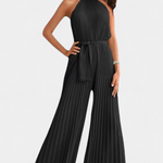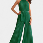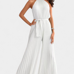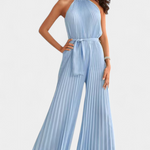 Elegant minimalism with an architectural touch. The Patrizia jumpsuit combines clean lines with fluid pleats that fall gracefully, while the halter neck adds a sophisticated and timeless air for events where style speaks for itself.