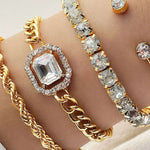 A bold take on everyday style, this studded bracelet set combines sleek metallic finishes with edgy details. Whether worn stacked for visual impact or alone for a refined touch, each piece adds a layer of contemporary and confident charm.