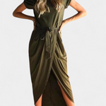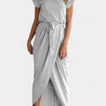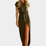Relaxed sophistication for every moment of the day. The Clarissa dress stands out with its wrap cut that gracefully defines the silhouette, while its fluid drape and side split give it a modern and flattering touch. A refined basic for warm days and special occasions.