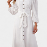 Leonor Off-the-Shoulder Dress with Buttons and Front Tie