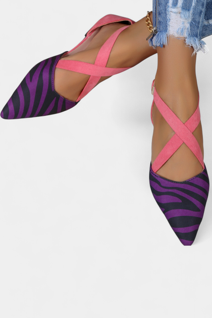 The Fenna ballerinas are designed to effortlessly stand out. With a bold zebra print, fuchsia details, and crossed straps that flatter the foot, they are the perfect blend of eye-catching style and everyday comfort. A fresh and versatile option that transforms any outfit.