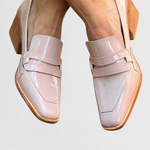 Retro elegance with a touch of modern attitude. The Sasha loafers combine the shine of patent leather with a sleek high heel and a square toe that makes a statement. Their refined silhouette and pink finish make this piece a bold declaration without compromising on comfort.