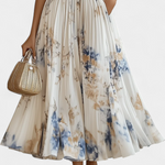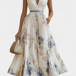 Elise Midi Dress Without Sleeves in Floral Print and Pleats