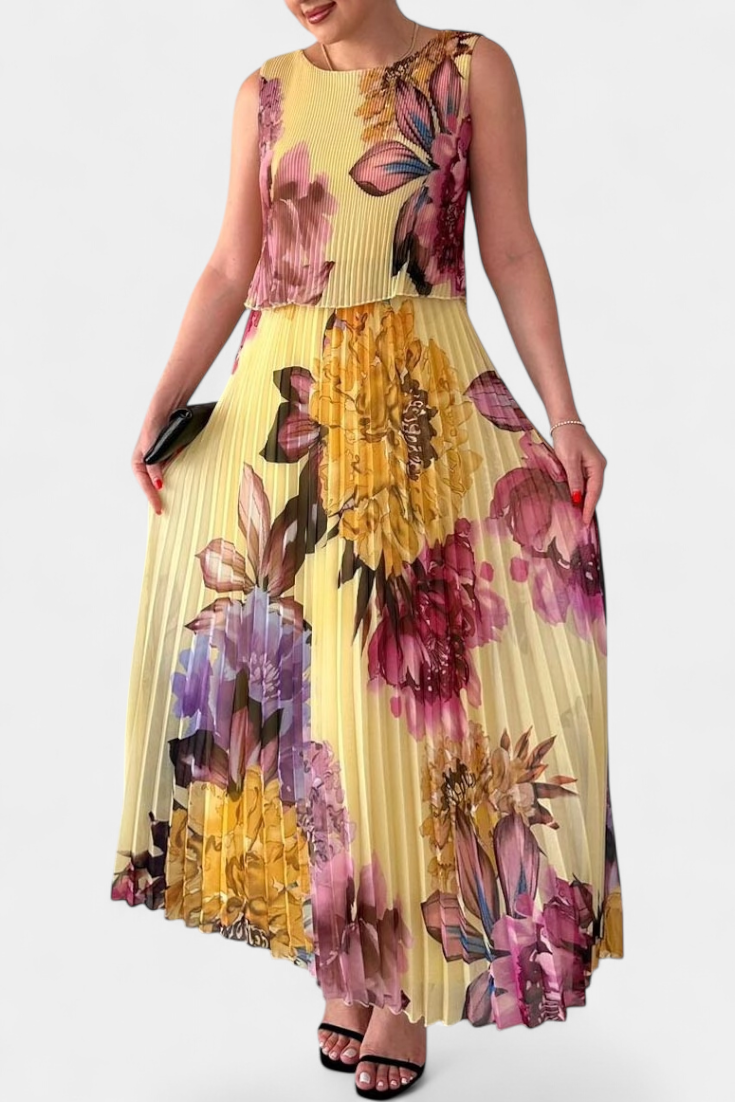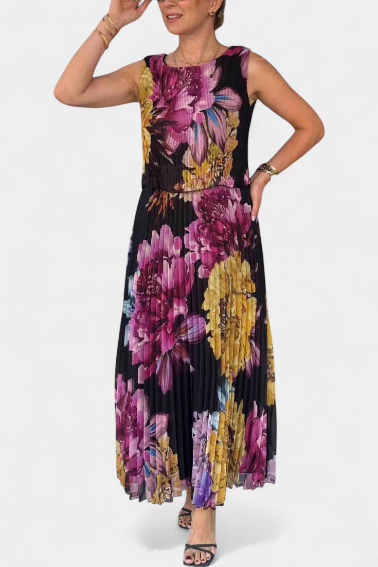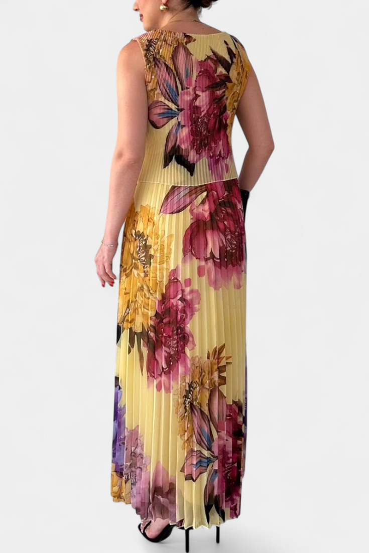Light and captivating, the Shaya dress is made from airy double-layer chiffon that provides fluidity and an ethereal movement with every step. Its elegant print and delicate pleats enhance the silhouette with natural grace, while the long drape creates a feminine and sophisticated look.