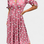 Lizzie Midi Polka Dot Dress with Deep V Neck