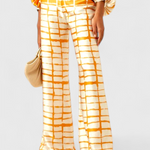 The Sybella set combines an off-shoulder blouse with puffed sleeves and wide-leg trousers featuring an artistic print. Designed to offer a fluid silhouette with personality, it is perfect for sunny days, laid-back getaways, or stylish gatherings.