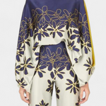- Blouse with dropped shoulders and puffed sleeves for a feminine and modern vibe