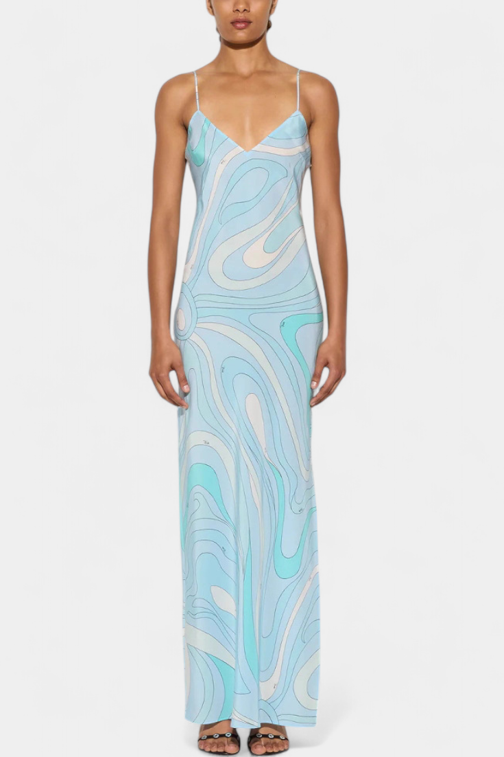 Valera Long Dress with Swirl Print and Sleeveless Cut