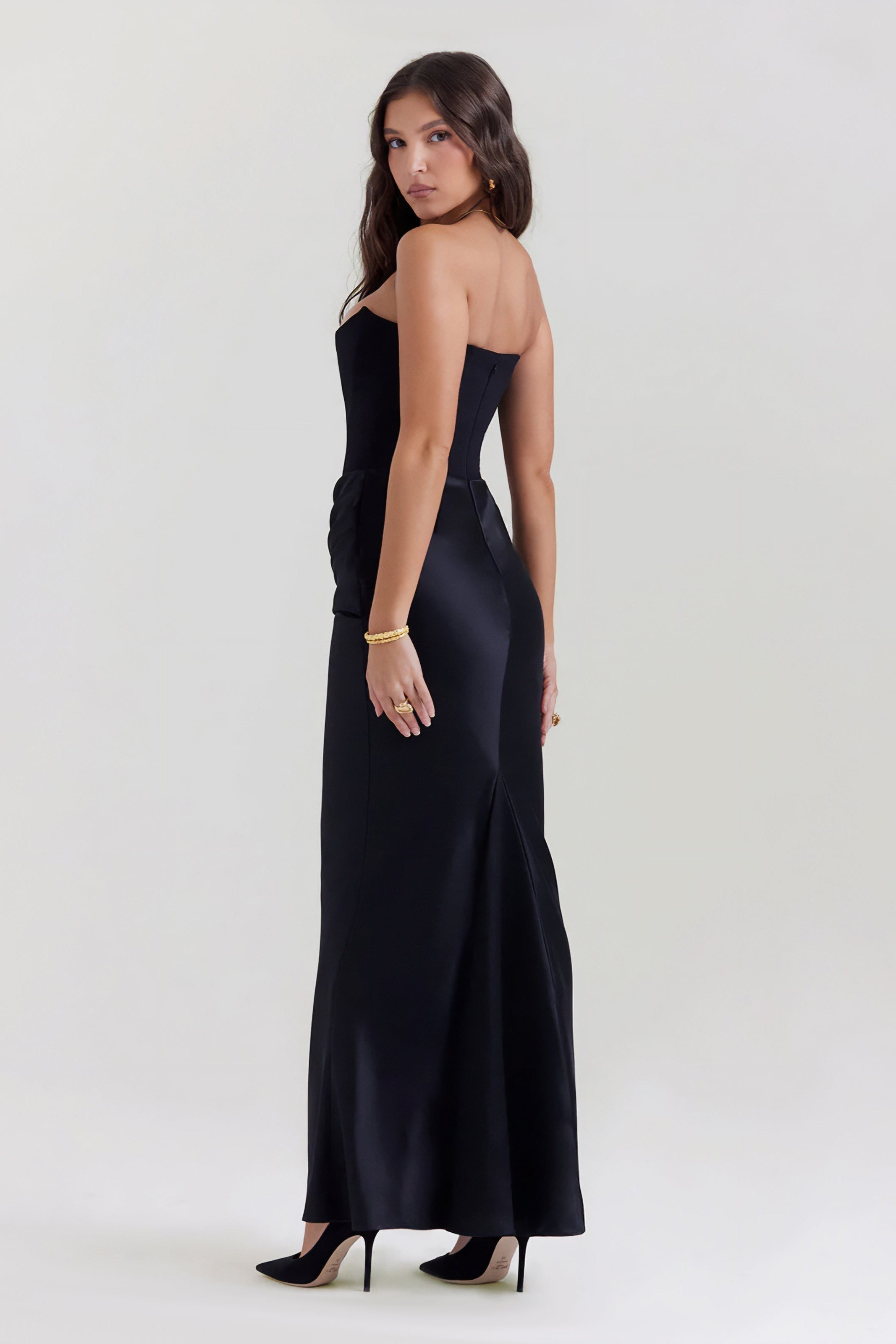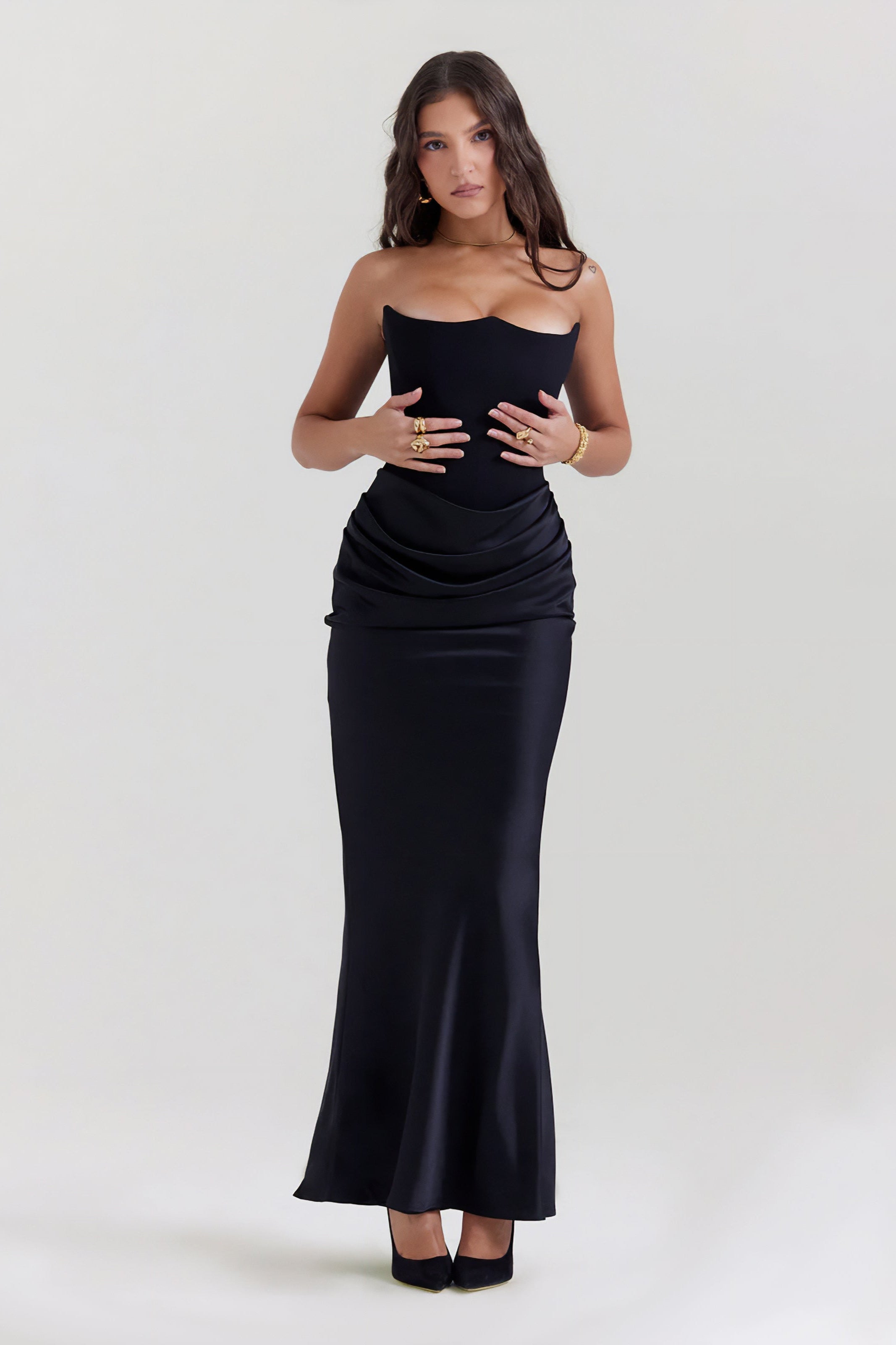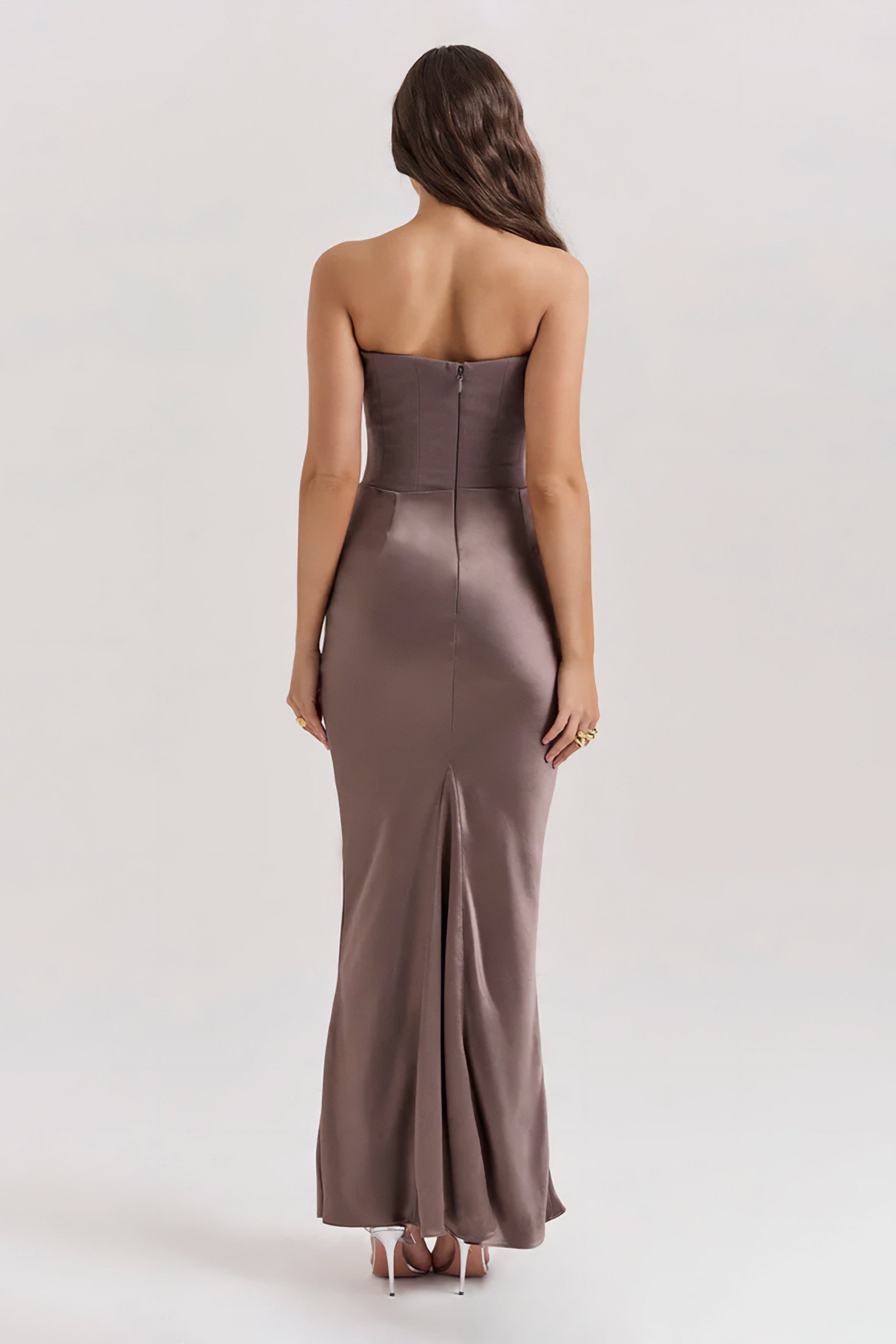 Striking and sophisticated, Emily combines timeless elegance with sculpted details that enhance the figure. Its strapless sweetheart neckline adds a romantic touch, while the fitted corset and draping at the hips create a refined and flattering effect. The floor-length silhouette makes it a perfect choice for dazzling at memorable occasions.