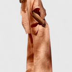 Cool, relaxed, and with a natural style, the Adesua set in orange is designed to accompany you lightly on the warmest days. The short-sleeved shirt and high-waisted trousers create a comfortable and flattering silhouette, perfect for a vibrant and effortless look.