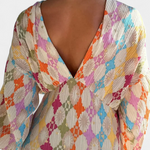 Colourful, enveloping, and full of personality. The Shanice dress in geometric fabric brings an artistic and sophisticated air with a wide, flowing silhouette. Designed to effortlessly stand out, it is ideal for summer getaways, creative events, or days where style meets comfort.