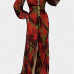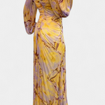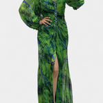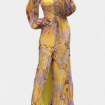 Quintessa Maxi Pleated Dress with Long Sleeves and Vibrant Print