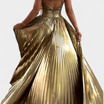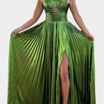 Aikaterini Metallic Maxi Dress with Crossed Neckline and Slit