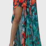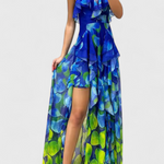Sculptural presence with a romantic touch. The Andy dress combines soft layers of ruffles with a side split and a subtle colour gradient, creating a design that flows elegantly and stands out effortlessly. Its sleeveless structure and ankle-length cut make it an ideal choice for stylish summer events.