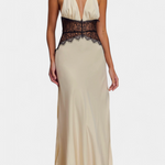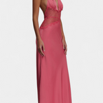 Ashanty Long Dress with Halter Neckline and Sheer Lace Waist