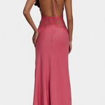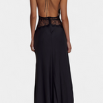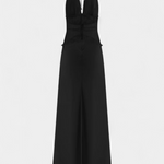 A design that radiates refined sensuality and sophisticated elegance. Ashanty combines a deep halter neckline with a delicate lace band at the waist, creating a perfect contrast between subtlety and boldness. The fluid fabric gracefully wraps around the body, while the completely bare back adds an unexpected and daring twist.