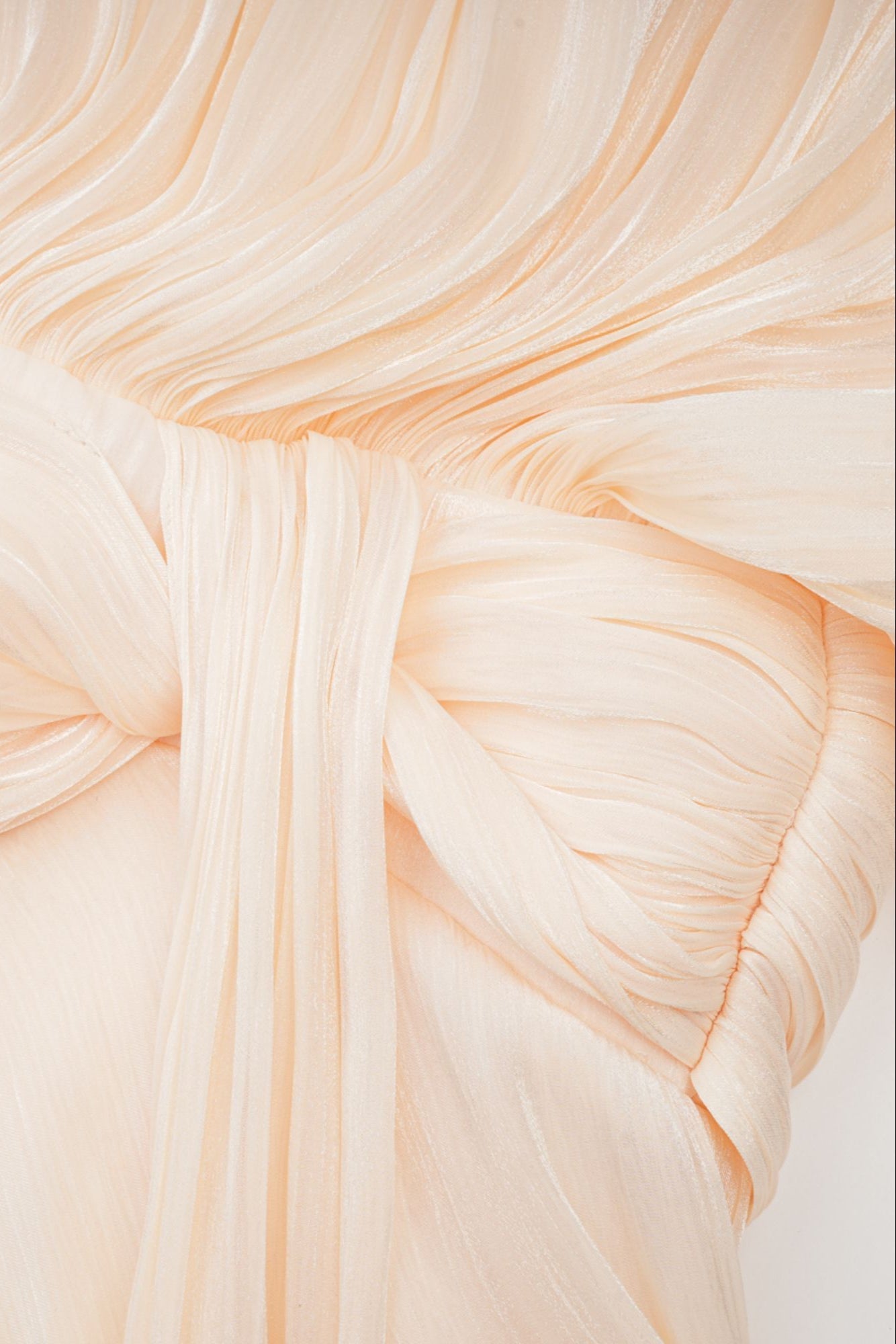 - Ruffled hems, shoulder pads, and pleats create elegant movement