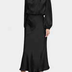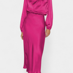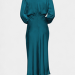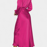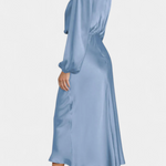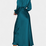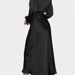 Feminine, elegant, and with refined presence, the Cecila dress combines a flowing maxi silhouette with a structured high neck and skirt featuring floral details. Its design is ideal for those looking to stand out with sophistication on special occasions without sacrificing comfort.