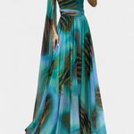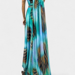 - Flowing maxi silhouette that flatters the figure with natural movement