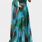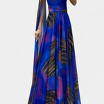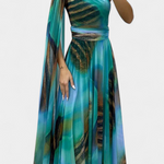Romantic and sophisticated, the Cedara dress brings a sculptural and feminine touch with its one-shoulder neckline and draped sleeve. The delicate floral appliqué elevates the design, while the flowing maxi silhouette moves gracefully, creating an unforgettable presence at any event. Crafted from a soft and elegant fabric, it balances comfort with refined glamour.