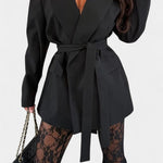 A modern and sophisticated set that redefines office style and elegant outings. Demelza combines an oversized blazer with a belt that adds structure and versatility, alongside high-waisted floral lace trousers with a unique mermaid cut that flatters and enhances the silhouette. The perfect balance between power and femininity, designed to stand out on any occasion.