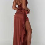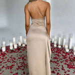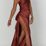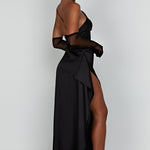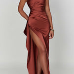 Designed to make an impression from the very first step. The Emberly dress dazzles with its fitted silhouette, crafted from stretchy fabric that elegantly enhances every curve. Its asymmetrical one-shoulder design with subtle draping is paired with a pronounced thigh split to add a sensual and sophisticated air. Perfect for special nights where visual impact is essential.