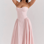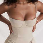 The definition of serene confidence, the Felicity Dress sculpts and enhances with a quiet sophistication. With its corset-inspired silhouette, sleeveless cut, and refined structure, it combines timeless elegance with a modern touch—perfect for moments that require impact and grace.