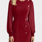 Jacequeline A-Line Dress with Buttons and Round Neck