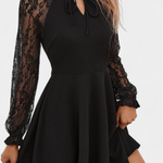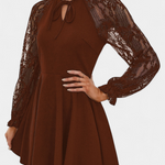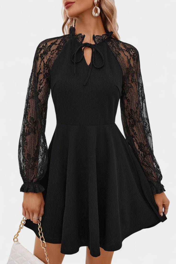Jasella Floral Lace Mini Dress with Long Sleeves