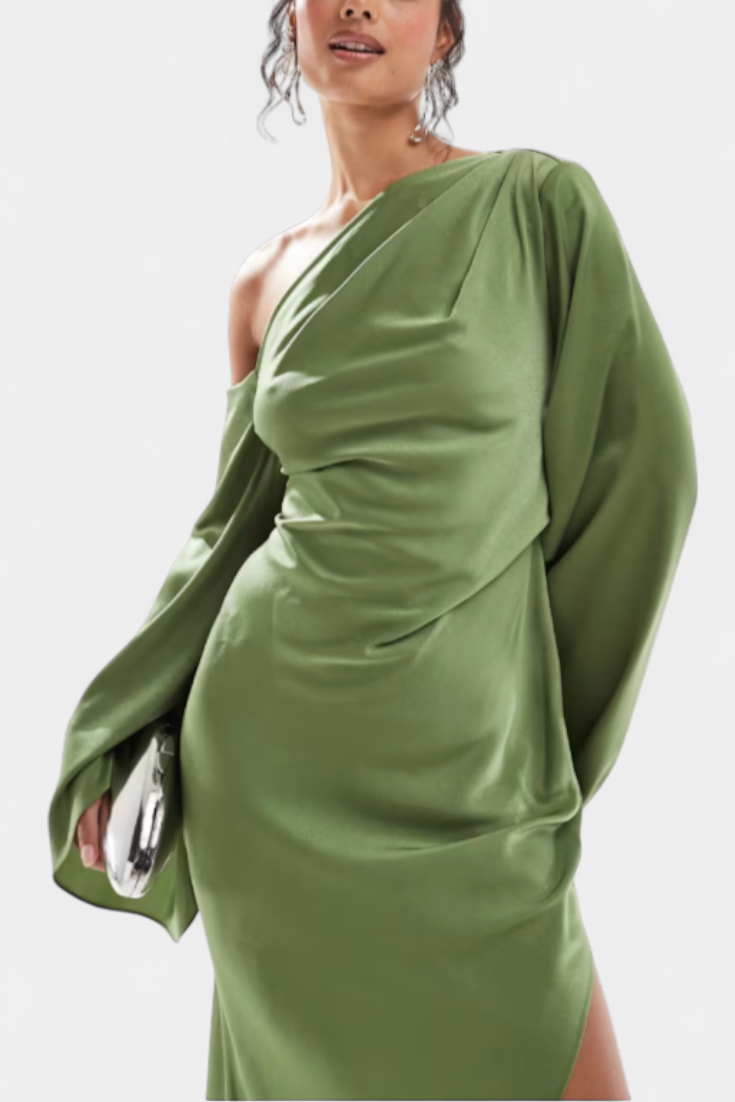 Keisha Asymmetrical One-Shoulder Maxi Dress with Sculpted Waist