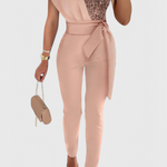 Make a statement without the dress. The Layla jumpsuit combines festive sparkle with flattering comfort, featuring a striking one-shoulder design and a sleek fit. Whether for a date, a night out, or a stylish outing, this is effortless glamour.