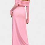 • Straight neckline that highlights the collarbone with a glamorous touch