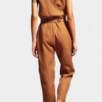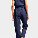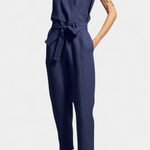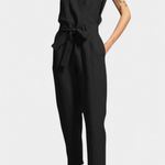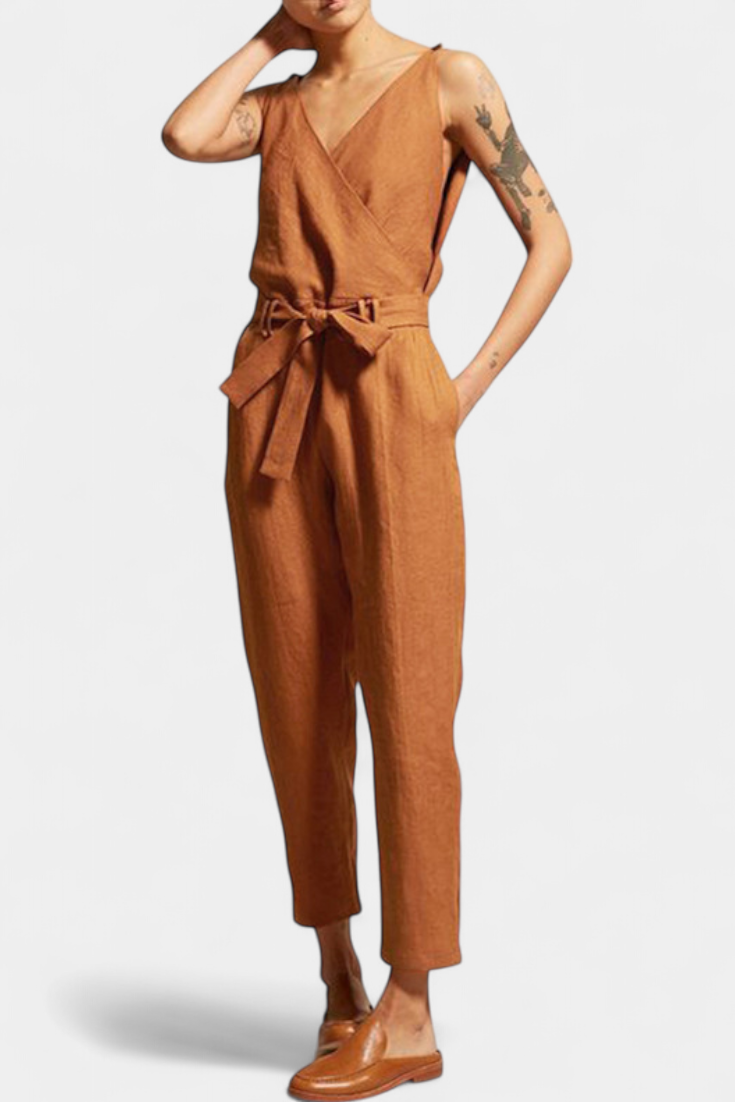 Sophisticated and timeless, the Maggie jumpsuit combines clean lines with lightweight cotton construction for a minimalist yet striking look. With a crossover V-neck, matching back, and tonal belt, it is the perfect choice for those seeking refined style and comfort for any occasion.