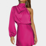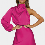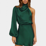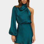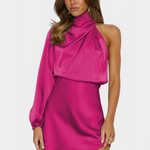 A design that effortlessly stands out with elegance. The Mara dress combines an asymmetrical neckline with fluid draping that enhances the silhouette, creating a sophisticated and contemporary look. Perfect for occasions when you want to make an impression without being over the top.