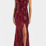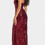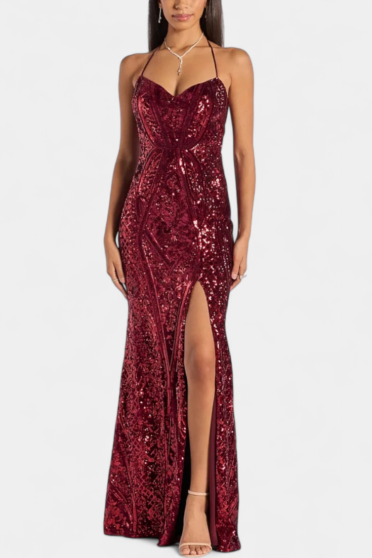 A dazzling silhouette that radiates magnetism and sophistication. The Marleni features a halter design that flatters the figure and a shiny sequin finish that captures every glimmer of light. Its flattering cut makes it the perfect piece to be the centre of attention.