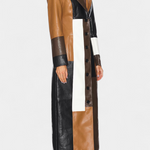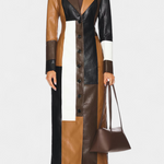 With a bold and contemporary flair, the Norelle coat reinvents the classic trench with a patchwork design in shades of brown, black, and white. Its structured lines and defined silhouette bring strength and sophistication, making it a key piece to stand out in any characterful urban look.