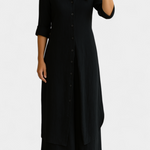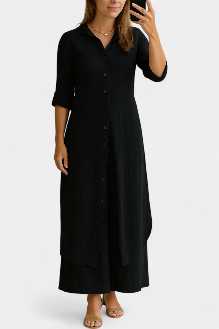 - Long shirt dress with a classic collar and three-quarter sleeves