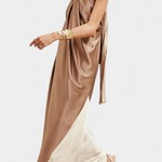 With a design that fuses sensuality and modernity, the Rebecca dress stands out with its halter neck and completely open back. Its fluid silhouette, along with the colour block play, creates an elegant and avant-garde visual impact. Perfect for those who wish to shine confidently at any special event.