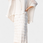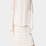 - Layered skirt with ruffles that adds lightness and movement