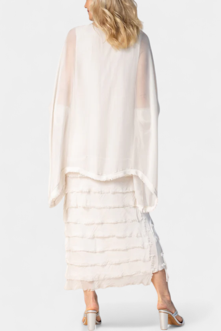 Rosaria Midi Dress with Ruffles and Frayed Edges