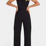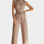 Powerful sophistication for any occasion. This jumpsuit redefines style with a clean, structured silhouette that elegantly accentuates the figure. The flared leg and high neckline create an imposing presence, while the functional details make it as practical as it is refined.